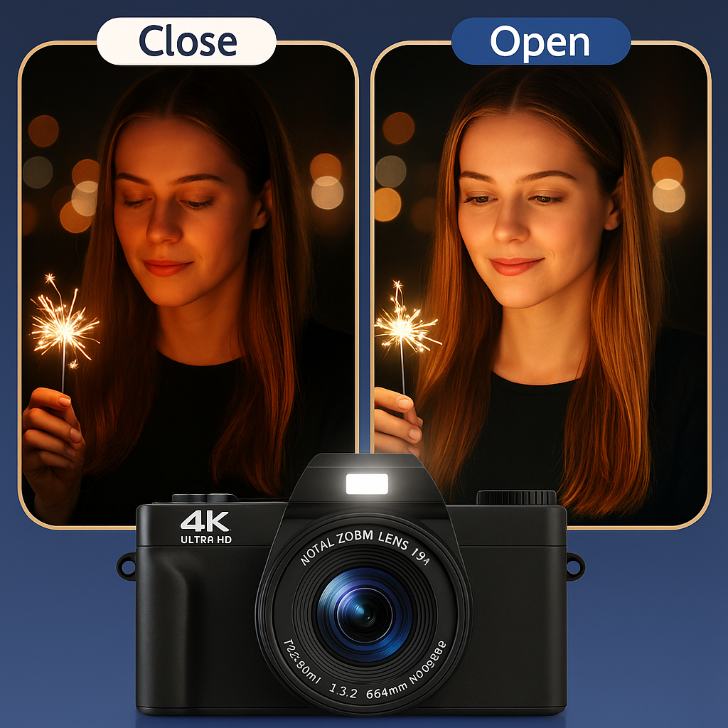 The camera comes with an integrated light source that enhances every shot when natural lighting isn’t enough. By providing consistent brightness, it ensures your photos remain sharp, clear, and full of detail, even in low-light environments such as indoor spaces or evening scenes. This built-in feature gives you the freedom to capture vibrant images without the need for an external flash, making the Lumvix Pro – Digital Camera more versatile and convenient for everyday use as well as professional content creation.