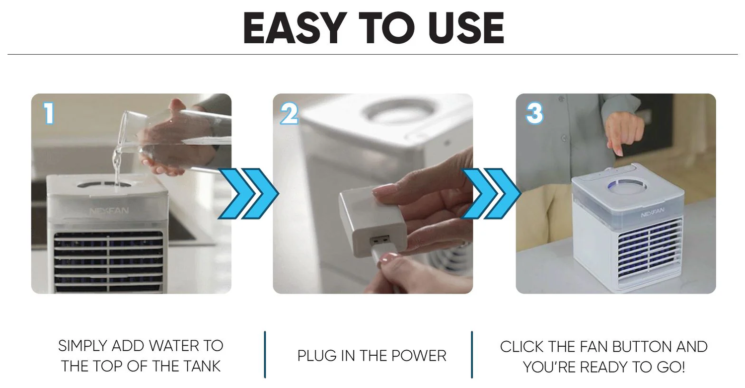 Beat the heat this summer both indoors & outdoors with the lightweight, USB powered & power-efficient portable AC