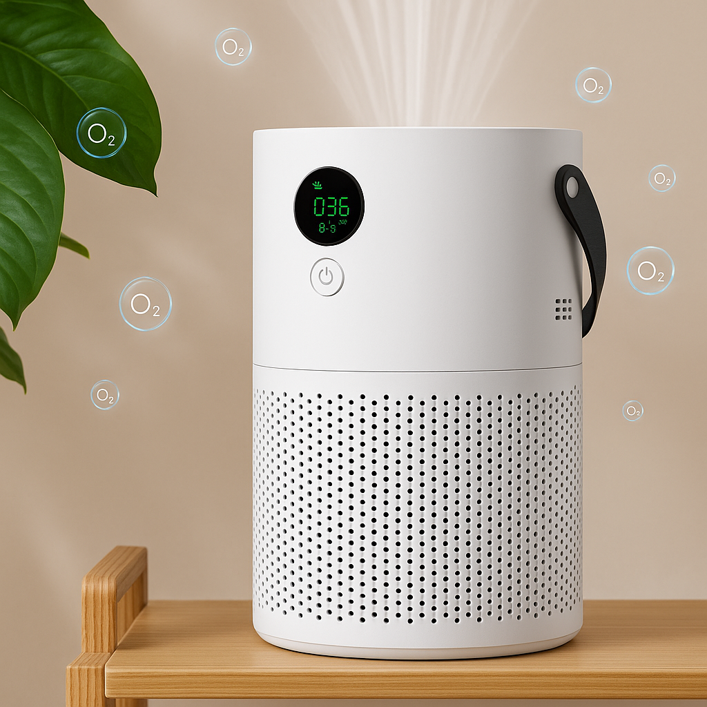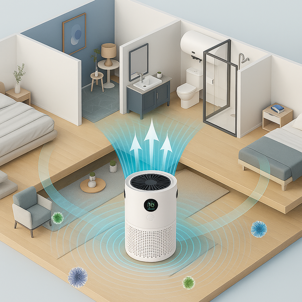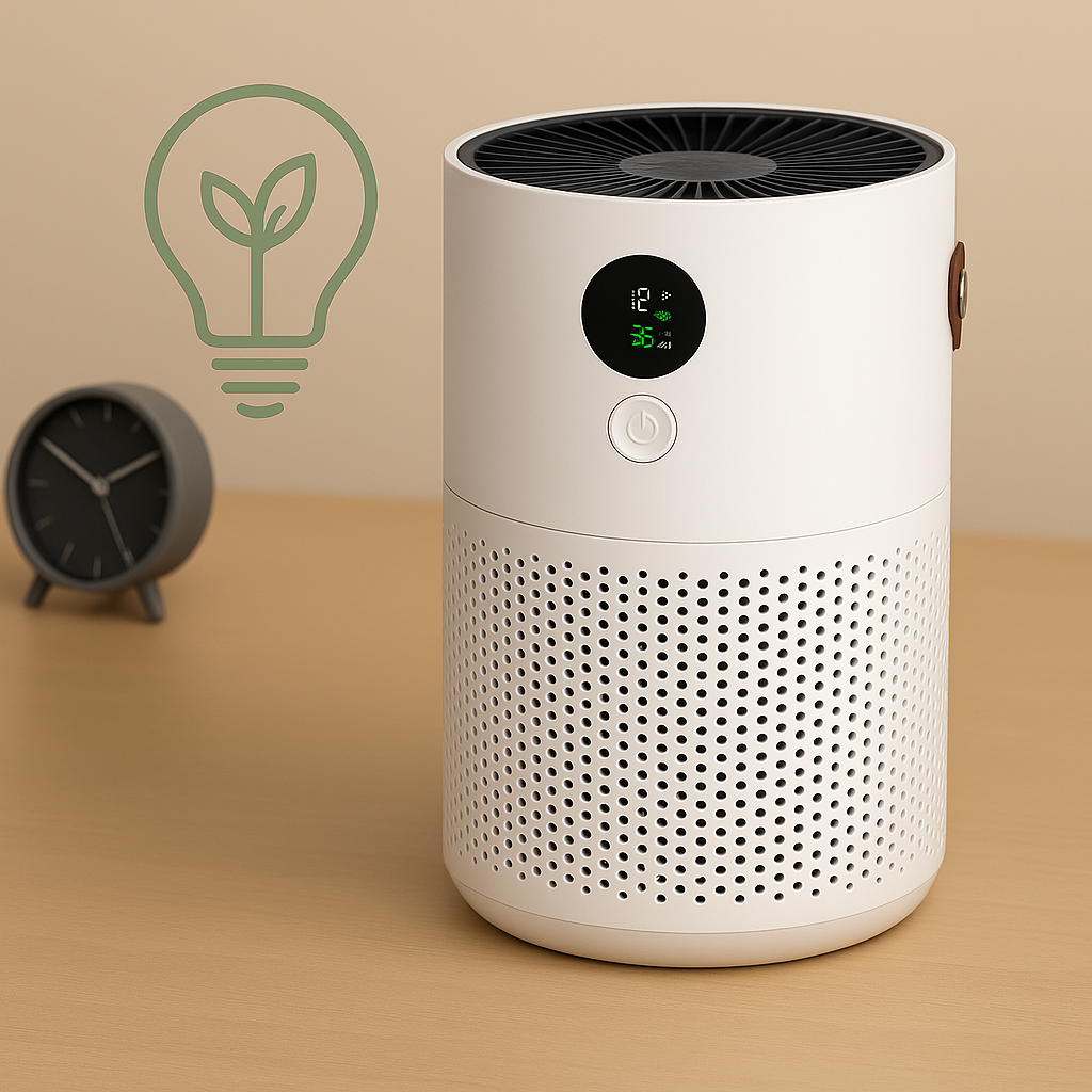 It effectively purifies spaces of around 35–60 m², making it ideal for bedrooms, offices and living rooms.